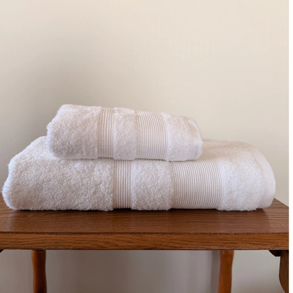 El set se compone de una toalla de cara de 50 x 85 cm y una de baño de 80 x 150cm.